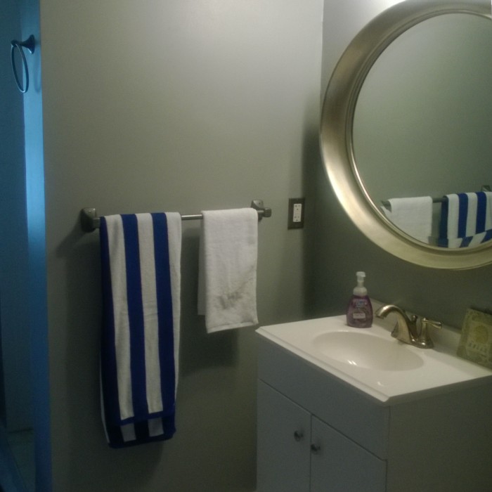 Amenities: Hall bath with shower, door to poolside patio; hair dryer; 100% cotton towels.